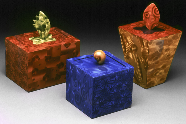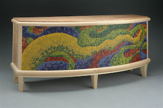 On the previous post we had a look at the jewelry Polymer artists are creating. This post will concentrate on other artistic uses of the material; as a laminate for furniture, boxes and vessels; in sculptures, mixed media, paintings, mosaics and installations. ?