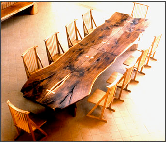 Trio of Elements is an exhibition at the Japan Information and Culture Center Gallery in Washington, DC. The opening reception is June 24th at 6:30 pm and there will be a lecture featuring all three of the artists. I happen to be friends with Tadao Arimoto and must say that his work is gorgeous. Born in Nara, Japan in 1949, Tadao’s work is inspired by nature. He has some really interesting ideas about how objects record time and how he tries to make his work conducive to that process. His work really allows for a connection to the materials in a tactile way. Tadao also uses local wood from his area of residence in western PA. I bought a couple of wooden plates at SCC’s store that he made. They were glossy black and highly textural and I learned about the process. I am going to butcher this, but basically he rough cut the plate and used a billowy torch flame to blacken the wood and burn down the soft wood pulp, leaving the harder grain pattern raised. I don’t have a picture of my plates, but here is an image from his website of a great table: